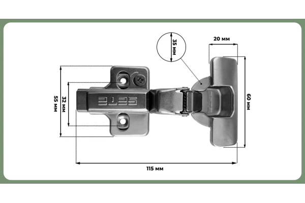 SETE Петля с доводчиком вкладная, с евро, регул. 3 пл., H=2, присадка=45, арт. HHC-3DCE