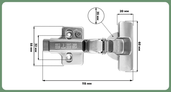 SETE Петля с доводчиком вкладная, без евро, регул. 3 пл., H=2, присадка=45, арт. HHC-3DC