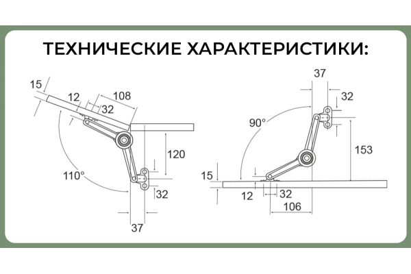Тип открывания: вверх / с фиксацией в любом положении под углом 40-100