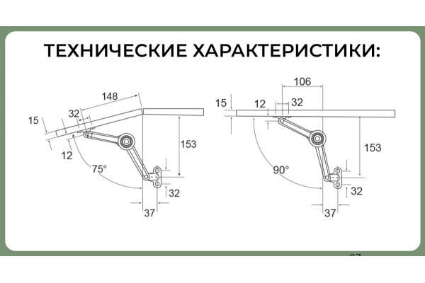 Макс. угол открывания, градусов: 75 ; 90; 105
