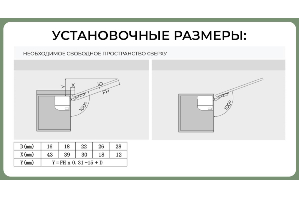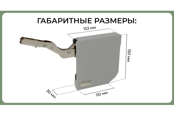 Функции: плавное открывание, свободной остановки под углом 60º-110º, плавное закрывание под углом 30º