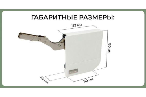 Комплектация: силовой механизм 2шт; заглушка левая/правая 2 шт; крепление к фасаду 2шт.; демпферы 2 шт.