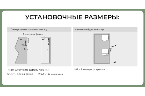 Для плавного закрывания дверцы дополнительно рекомендуем приобрести петли с доводчиком;