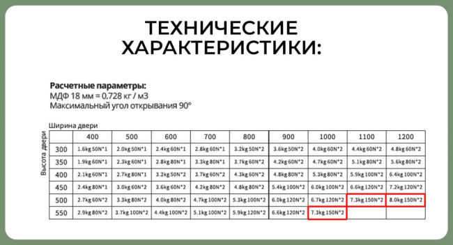Доп. информация:кол-во газлифтов на дверцу подбираем по таблице;