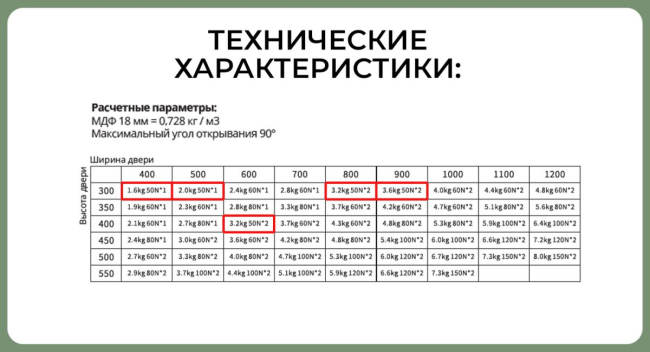 Доп. информация:кол-во газлифтов на дверцу подбираем по таблице;