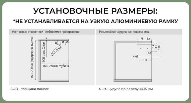 Мин. глубина шкаф мм: 230