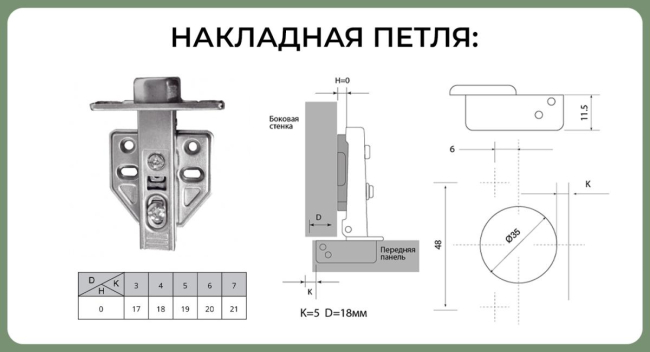 2) Петля накладная, Clip On