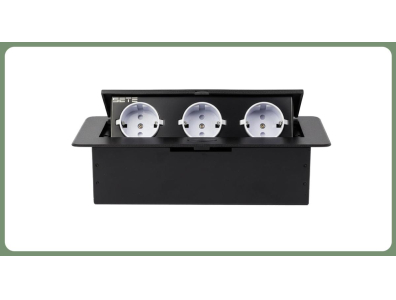 SETE Встраиваемый настольный удлинитель, 3 гнезда, без кабеля, черный, арт. SBT-R03-20