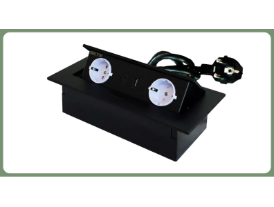 SETE Встраиваемый удлинитель, 2 гнезда, 1 USB, 1 type C, с кабелем, черный арт. SBT-2UCT-20