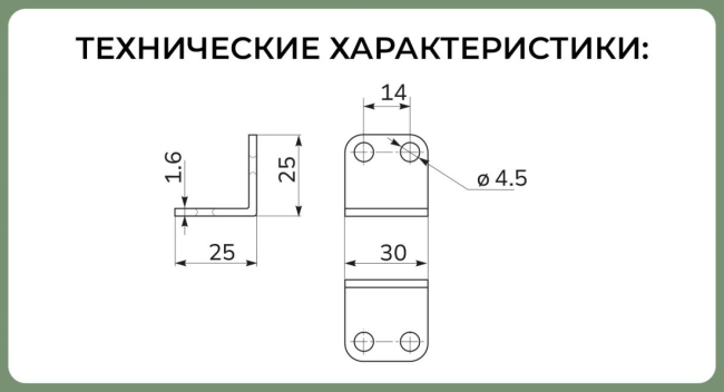 Наименование: Уголок 25х25*30 И оцинк. 4 отверстия <800> 030676