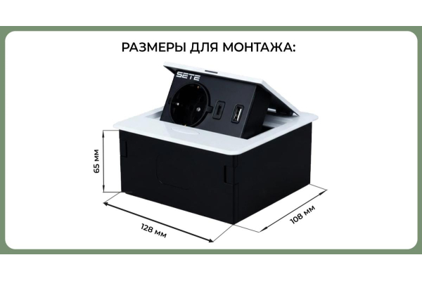 Наименование: SETE Встраиваемый удлинитель, 1 гнездо, 1 USB, 1 type C, с кабелем, белый, 12шт/кор SBT-1UCT-10