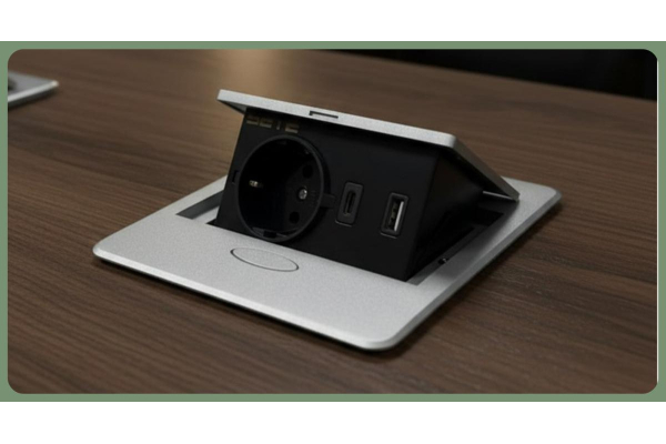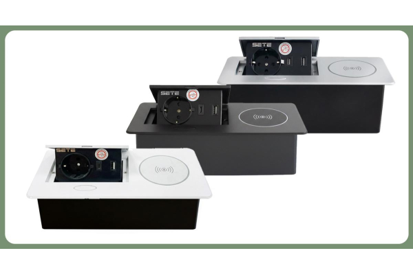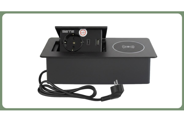 SETE Встраиваемый удлинитель,1 гнездо, 1USB, 1 type C, беспров. зарядка, черный, SBT-1UCWT-20