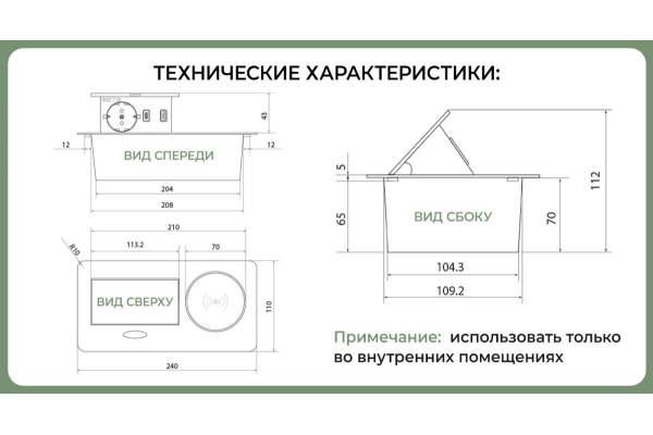 - Монтажное отверстие, мм: д.210 х ш.110 х в.70мм