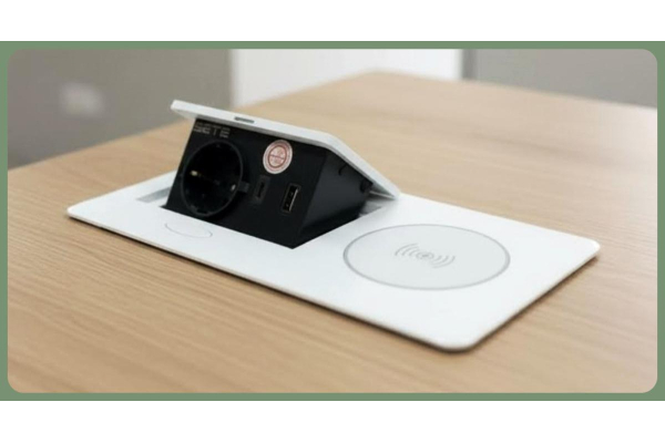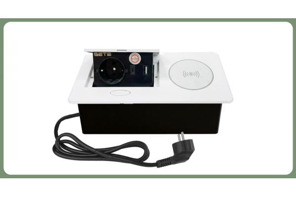 SETE Встраиваемый настольный удлинитель,1 гнездо,2*USB,беспровод. зарядка, белый,9шт/кор,SBT-1UCW-10