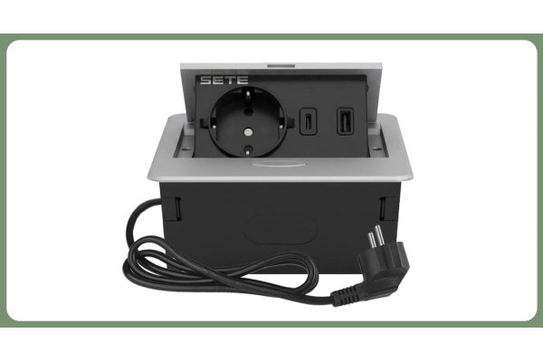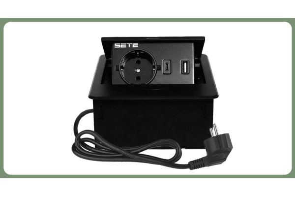 SETE Встраиваемый удлинитель, 1 гнездо, 1 USB, 1 type C, с кабелем, черный, SBT-1UCT-20