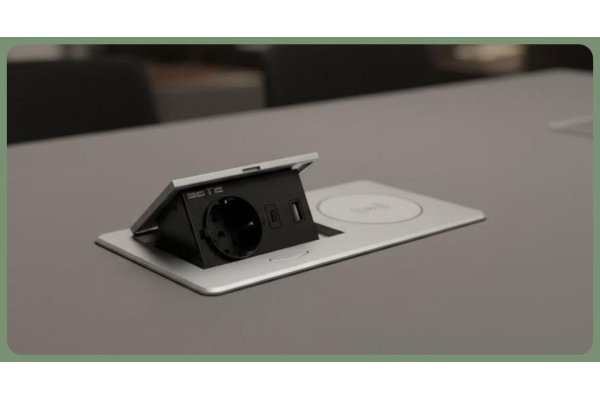 SETE Встраиваемый настольный удлинитель,1 гнездо,2*USB,беспровод. зарядка, серый 9шт/кор.SBT-1UCW-80