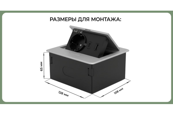 Наименование: SETE Встраиваемый удлинитель, 1 гнездо, 1 USB, 1 type C, с кабелем, серый, 12шт/кор SBT-1UCT-80