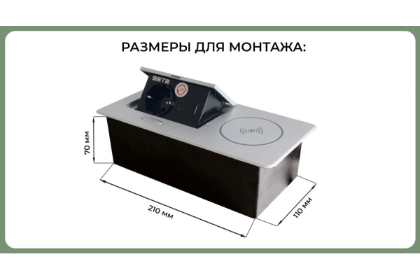 Наименование: SETE Встраиваемый удлинитель,1 гнездо, 1USB,1 type C, беспров. зарядка, черный 9шт/кор SBT-1UCWT-20