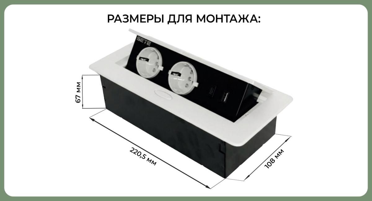 Наименование: SETE Встраиваемый удлинитель, 2 гнезда, 1 USB, 1 type C, с кабелем, белый, SBT-R2UCTN-10