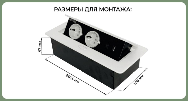 Монтажное отверстие, мм: 222 х 110 х 66 мм