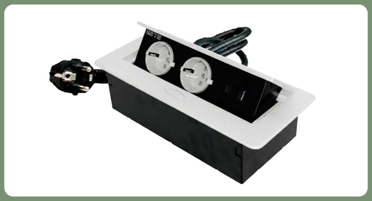 SETE Встраиваемый удлинитель, 2 гнезда, 1 USB, 1 type C, с кабелем, белый, SBT-R2UCTN-10