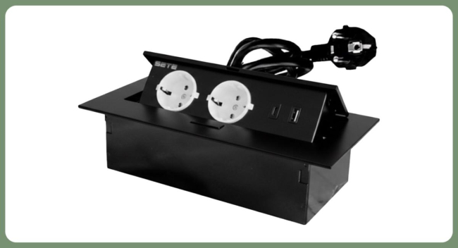 SETE Встраиваемый удлинитель, 2 гнезда, 1 USB, 1 type C, с кабелем, черный, SBT-2UCTN-20