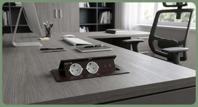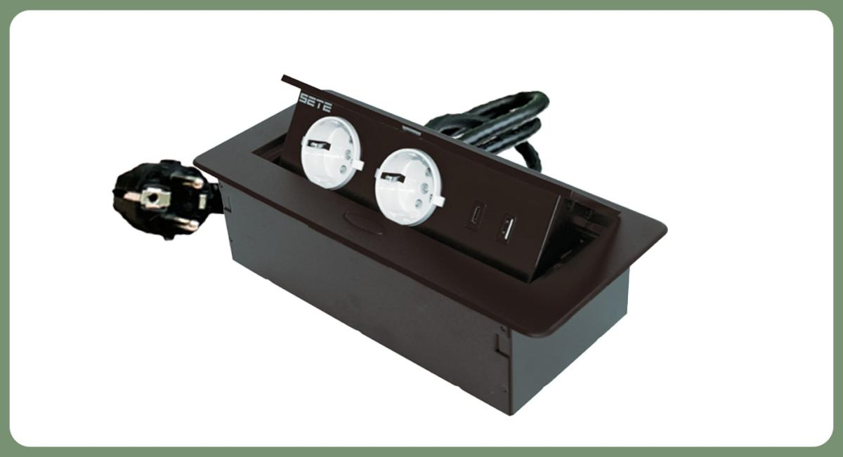 SETE Встраиваемый удлинитель, 2 гнезда, 1 USB, 1 type C, с кабелем, черный, SBT-R2UCTN-20