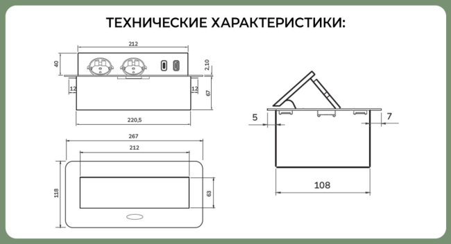 Разъемы: 1 USB 5V 2.1A, 1 type C 2.1A