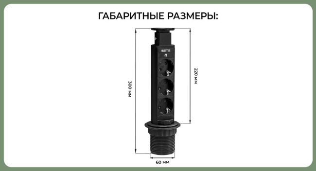 Наименование: SETE Удлинитель настольный выдвижной, 230V,60mm,черный, SPO-3B