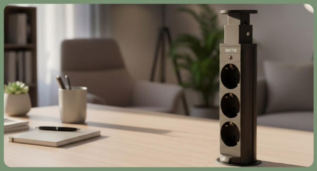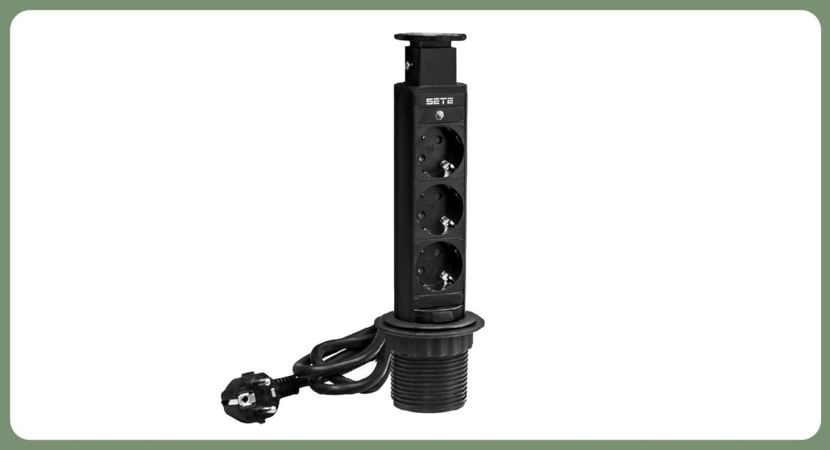 SETE Удлинитель настольный выдвижной, 230V, 60mm, черный, арт. SPO-3B