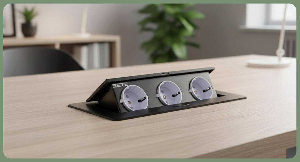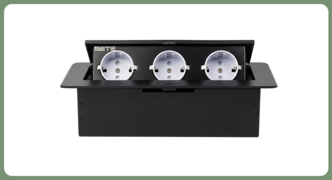 SETE Встраиваемый настольный удлинитель, 3 гнезда, без кабеля, черный, арт. SBT-R03-20