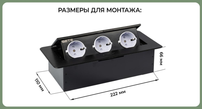 Наименование: SETE Встраиваемый настольный удлинитель, 3 гнезда, без кабеля, черный, SBT-R03-20