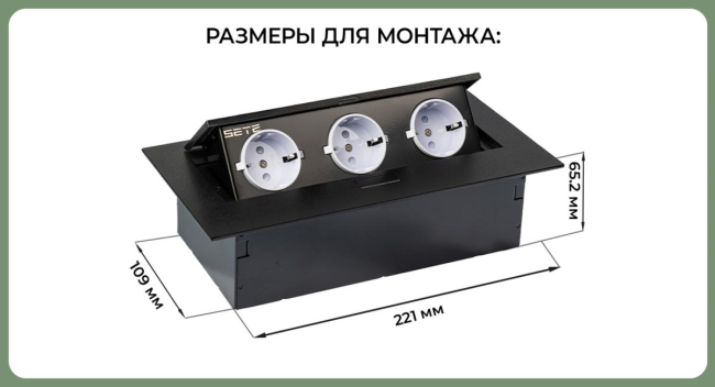 Наименование: SETE Встраиваемый настольный удлинитель, 3 гнезда, черный, с кабелем, SBT-3C-20