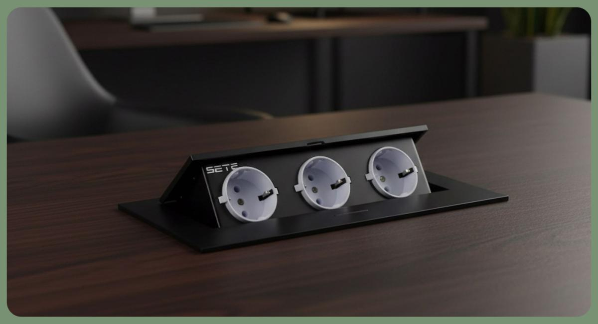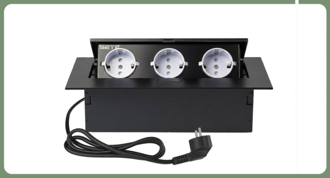 SETE Встраиваемый настольный удлинитель, 3 гнезда, с кабелем, черный, арт. SBT-3C-20