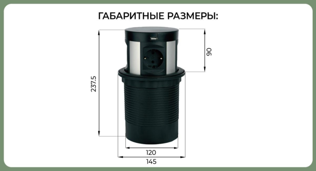 Наименование: SETE Выдвижной настольный удлинитель, круглый,c беспроводной зарядкой, 230В, 2*USB, черный
